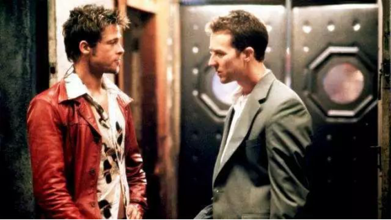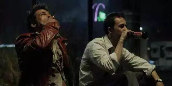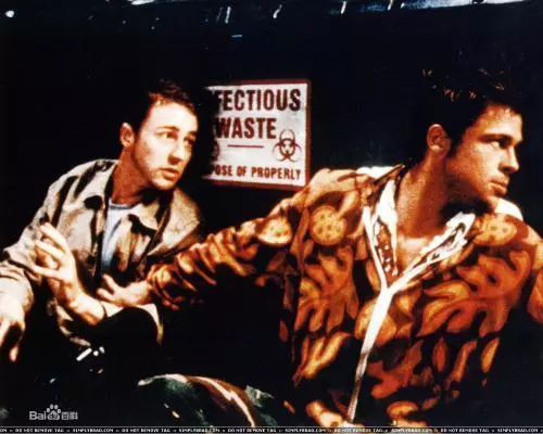 这里有一个小插曲是他在参加第一次的病友会的时候,指导师的背后就闪回出现了他所幻想的另一个男人泰勒的剪影。其实从那个时候开始他就已经有了分裂的苗头。实际上从分离性身份障碍(俗称人格分裂)的病情来讲,一般都是在生活中受到极端刺激的人容易分裂出其他人格,大多数人都是因为童年有过诸如侵犯、威胁、虐待等等遭遇。而主人公所受的刺激莫过于童年缺乏父爱和父母的争吵。所以他的病情应该是在童年就已经开始发展,这个人格的成长是伴随着主人公的心理需求发展的,可能最初只是一个父亲的模样,后来逐渐成为一个代表了叛逆、大胆、果断的形象。