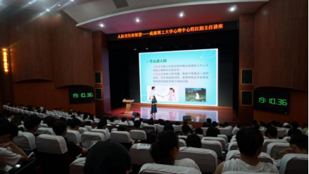 2019年5月21日晚七点,成都理工大学心理健康教育中心程红娟主任应邀来到我校艺术交流中心,与300余名学生一起进行了题为《人际交往的智慧》的心理讲座,程主任讲课幽默风趣、充满智慧,学生们均表示收获满满,对心理健康与人际交往有了更多的思考与感悟。