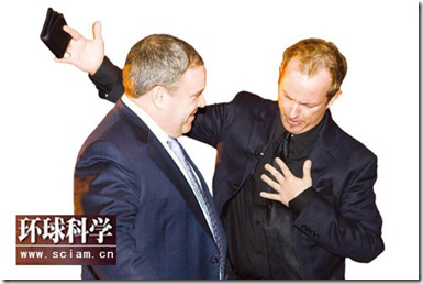 阿波罗·罗宾斯(上图右)常常标榜自己是个职业扒手。他给我们示范如何误导“目标”朝某个方向看而不注意自己的贵重物品。罗宾斯借助身体接触、侵犯“目标”的私人空间以及误导性的眼神等手段来达到目的,例如神不知鬼不觉地把一块腕表从一个人手上取下来。