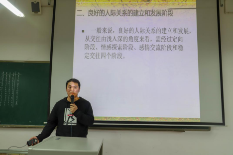 数媒学院心理协会分会于5月25日在A10-403教室开展了“声声相惜”主题班会活动,通过各种趣味小游戏帮助同学们学习怎样更好的处理人际关系,提升人际交往能力。