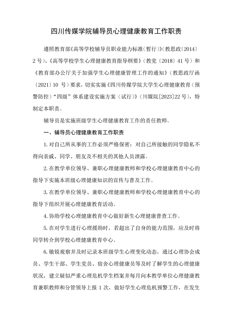 兼职心理健康教育教师职责