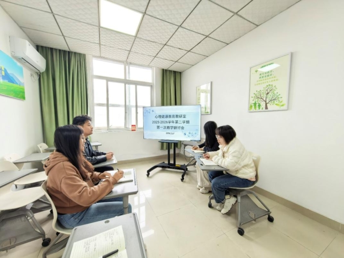 2026年2月27日上午,我校心理健康教育教研室在中心213办公室召开本学期首次教学研讨会。会议由教研室主任陈旭梅主持,全体在岗教师参会,围绕新学期教学规划、重点工作及活动安排进行深入研讨,为后续工作明确方向。